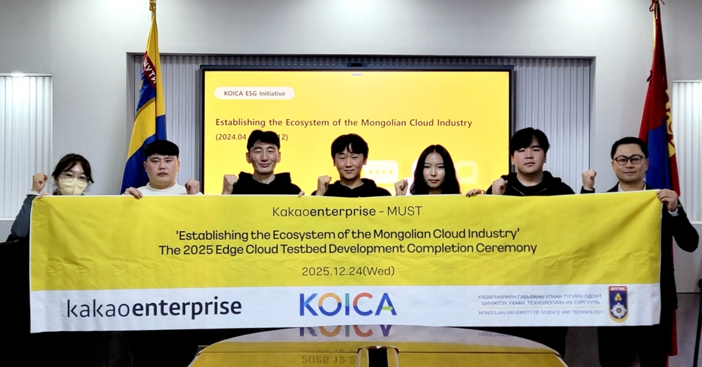 [2025-12-29] 카카오엔터프라이즈(대표 이원주)가 29일, 몽골 국립과학기술대학교(이하 몽골 과기대) 내 엣지 클라우드 테스트베드 구축을 완료했다고 밝혔다.